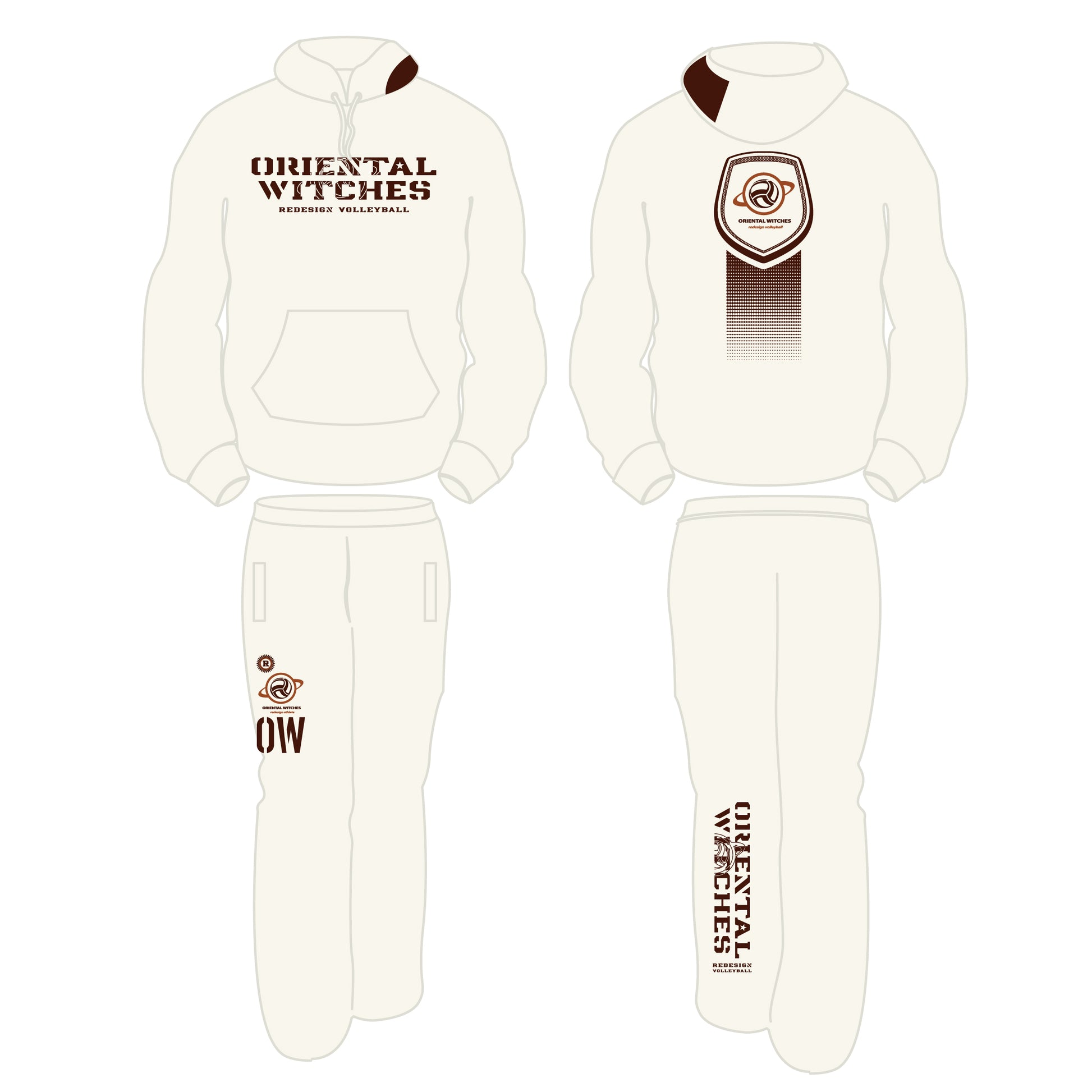 フーディーコットンスウェットスーツ オートミール(ダークブラウン×ライトブラウン)