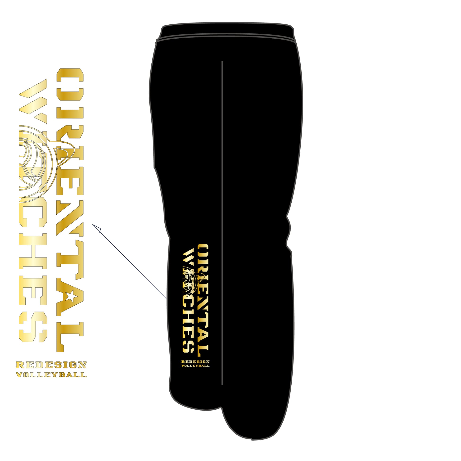 フーディーコットンスウェットロングパンツ ブラック(ゴールド×ホワイト)